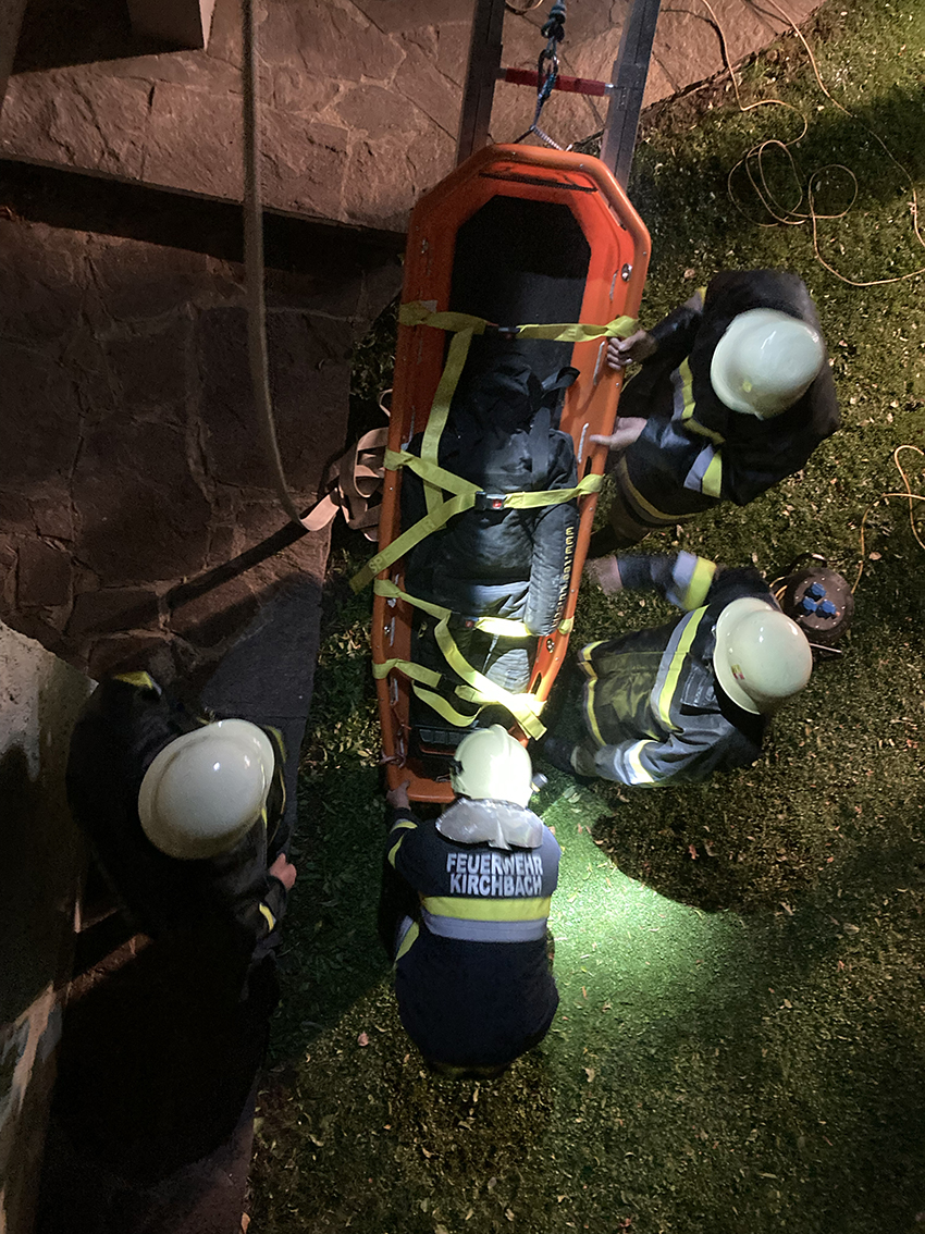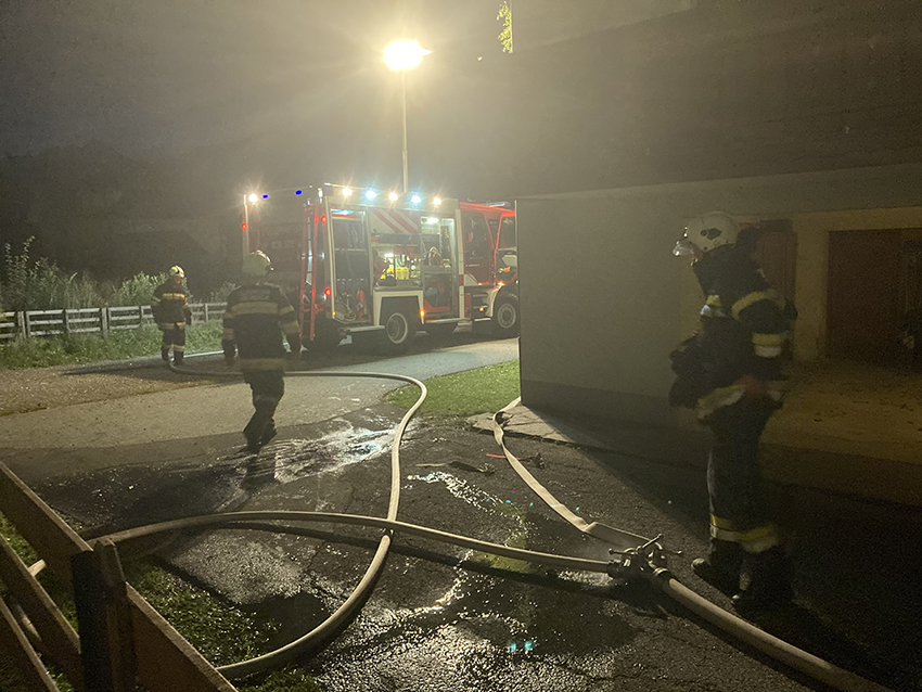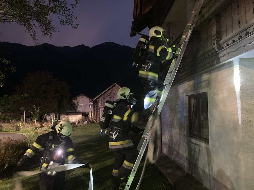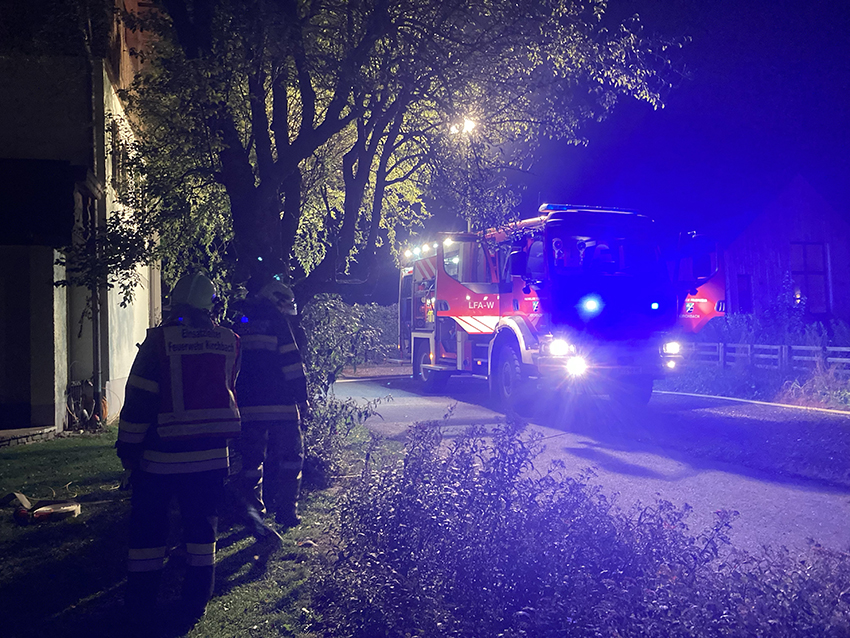 So lautete die Übungsmeldung für den 2. Zug am Samstag, den 4. Oktober 2025. Unter der Einsatzleitung von BM Markus Astner rückten die Kameraden mit den Fahrzeugen KRF und LFA-W zum Übungsort aus. Eine Zubringer- sowie Angriffsleitung für den Atemschutztrupp wurde aufgebaut. Eine vermisste Person konnte von dem Atemschutztrupp gefunden und mittels Schleifkorbtrage über das 1. Obergeschoss gerettet werden.