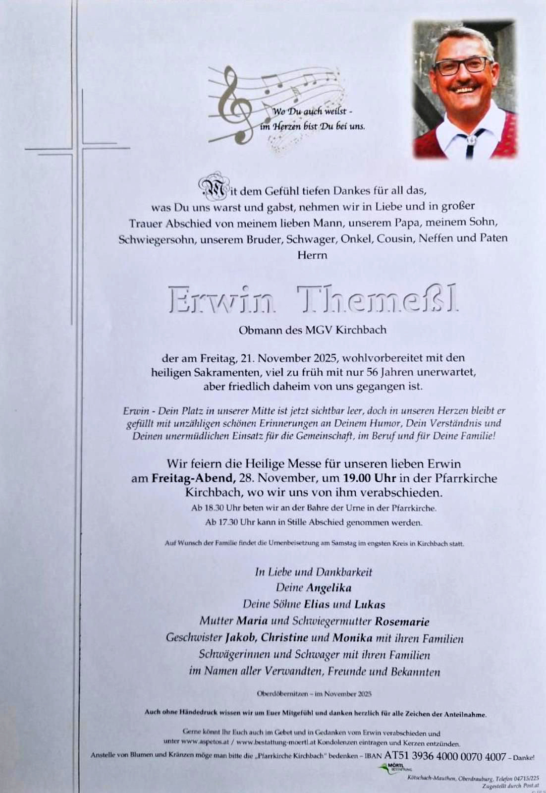 Freitag, 21. November 2025 - FF Kirchbach trauert um HFM Erwin Themeßl