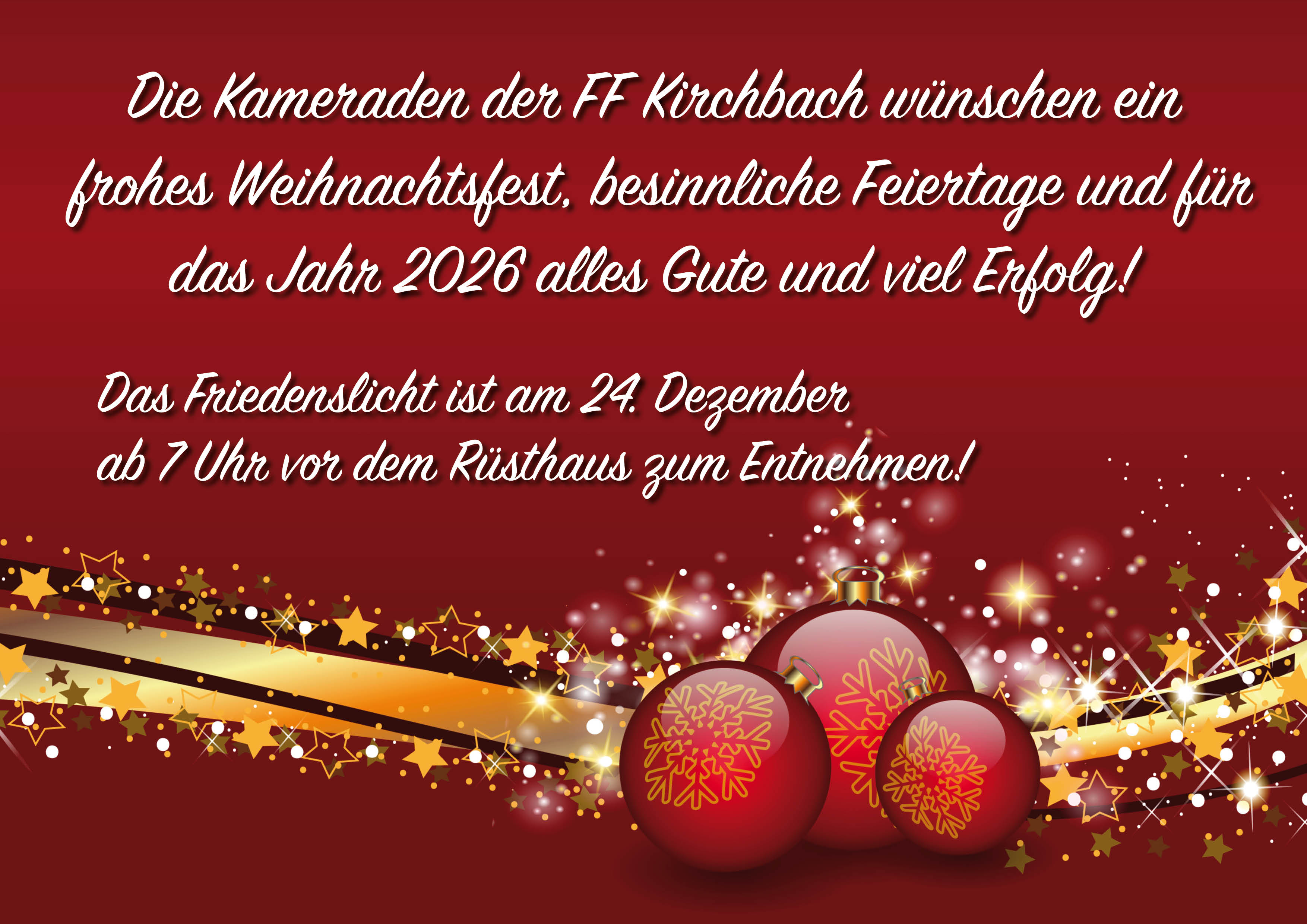 Jahreshauptversammlung der FF Kirchbach Montag, 5. Jänner 2026 - Jahreshauptversammlung der FF Kirchbach Weiterlesen: Jahreshauptversammlung der FF Kirchbach